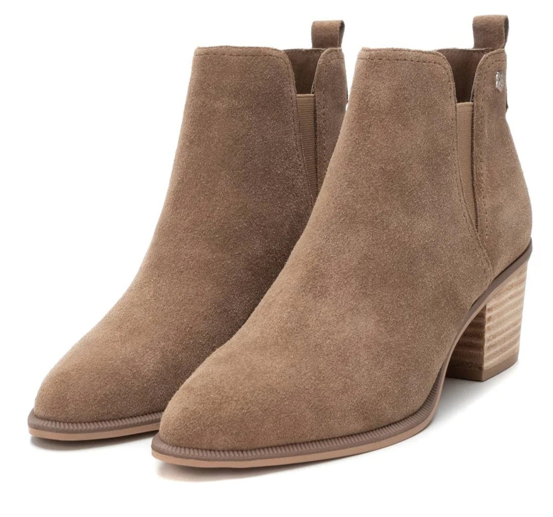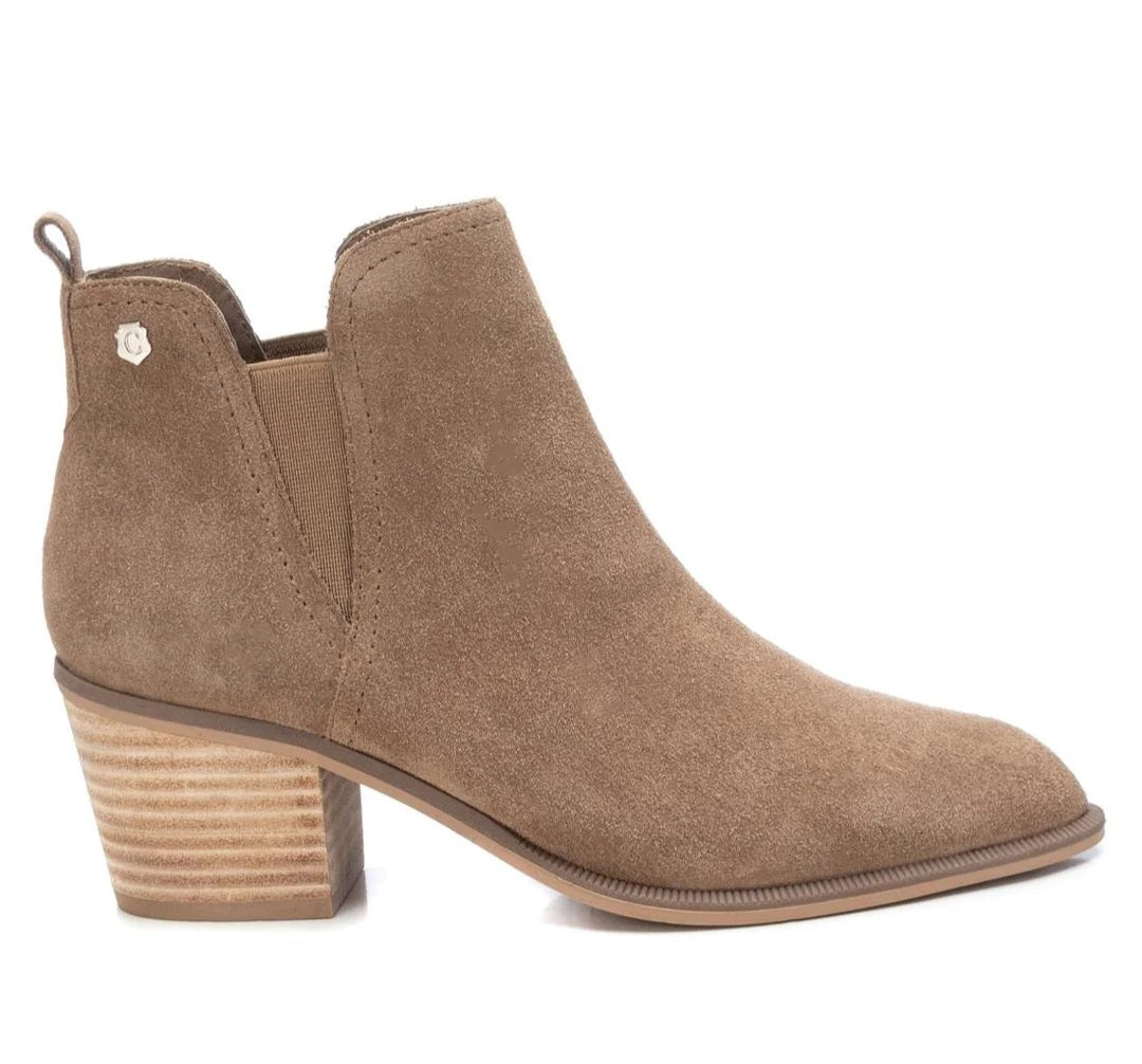 Botim em camurça cor Taupe. Confortável e um clássico fácil de combinar. Carmela