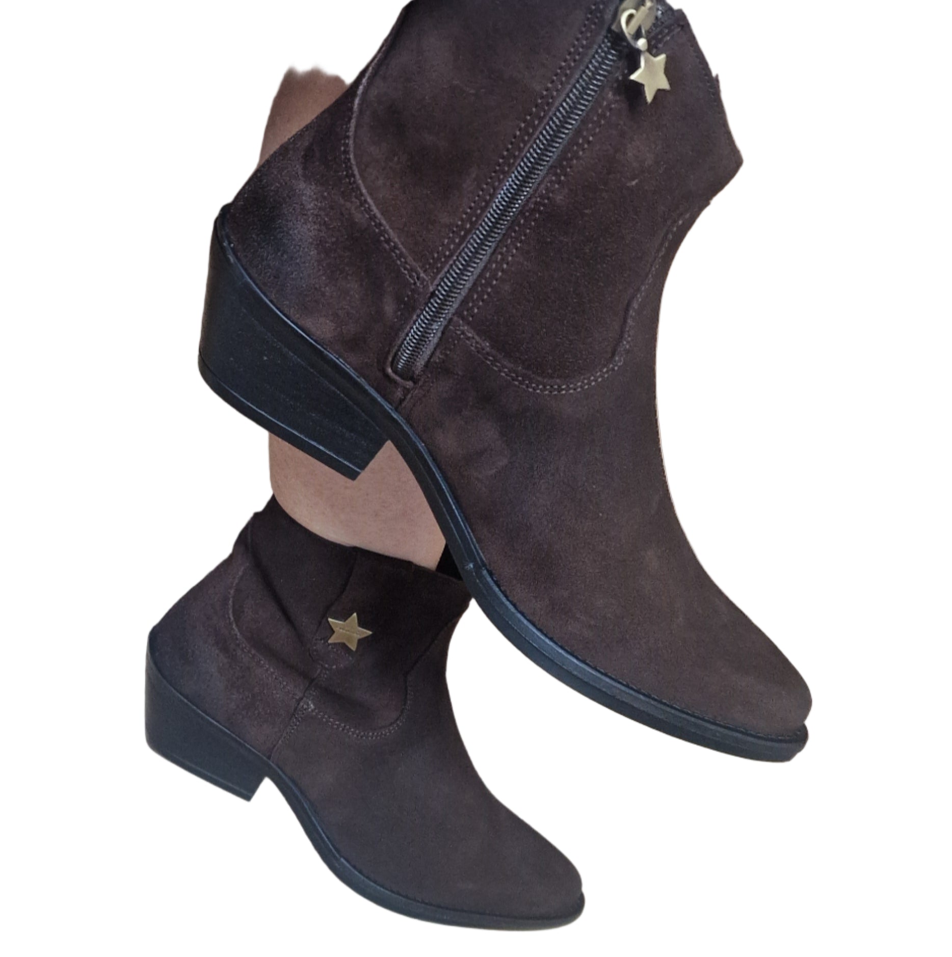 Bota feminina da marca Cubanas. Fabricada em Camurça macia cor Chocolate. Fecho com zíper. Um clássico sempre indispensável.