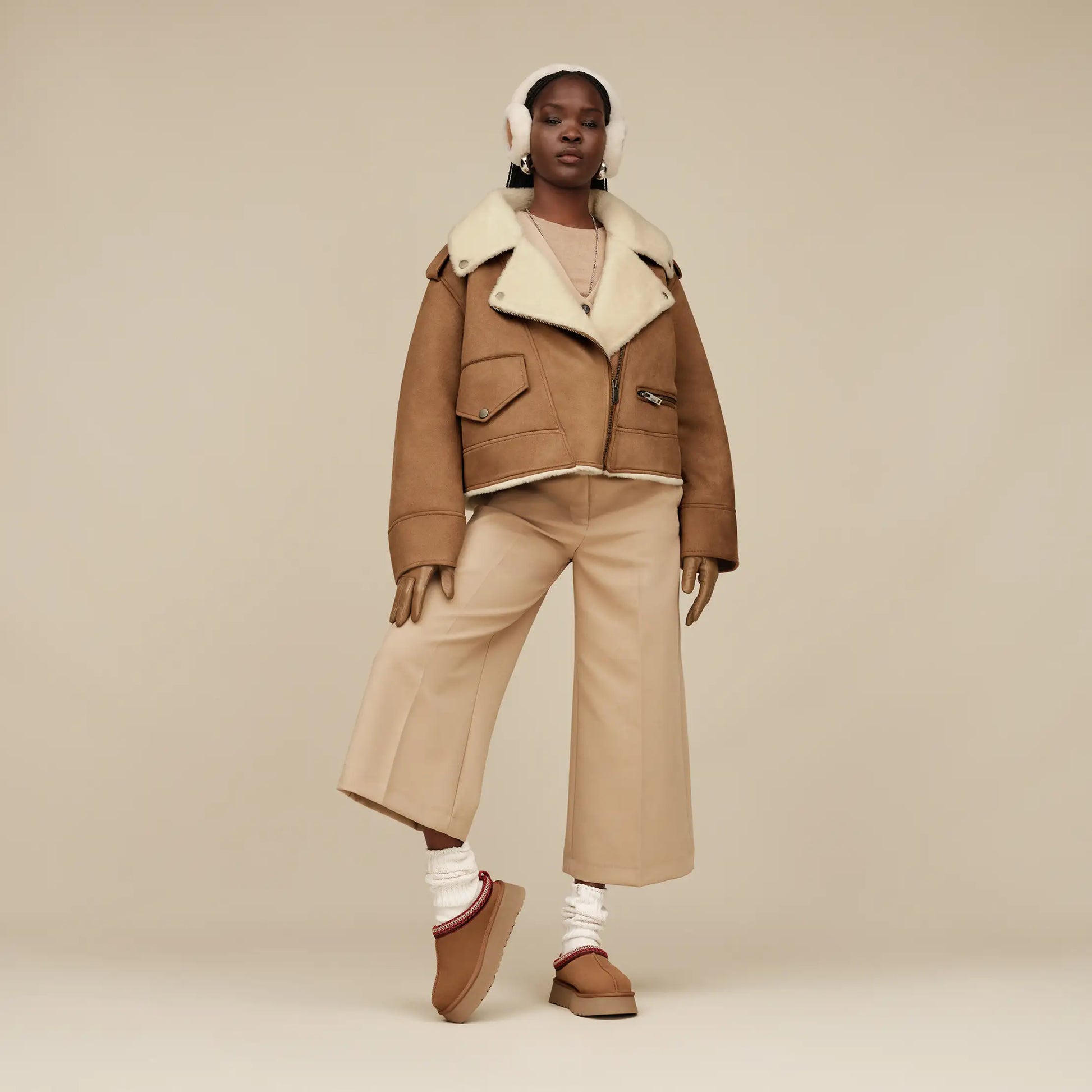 Plataforma leve? Sim Detalhe UGGbraid? Sim A parte superior é feita em camurça suave forrada com pele de carneiro macia e a sola exterior em EVA de cana-de-açúcar tem uma forma rocker melhorada para um movimento sem esforço.