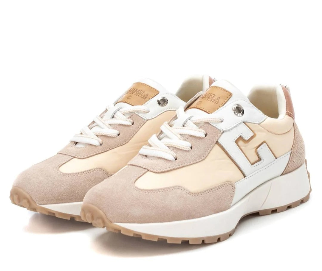 Sapatilha em pele e nylon. Brnca bege e butter cream,palmilha conforto. Sola anti derrapante. Carmela